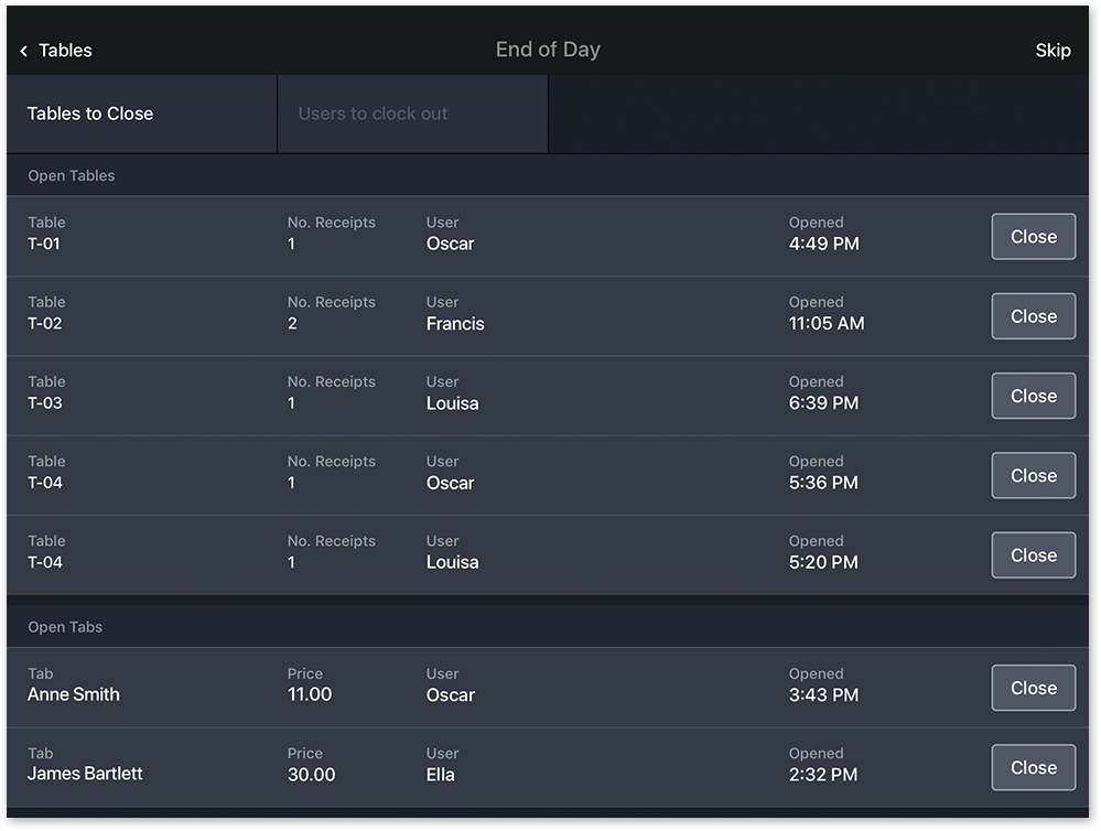 - Vous suivez le nombre de tickets et de tables servies