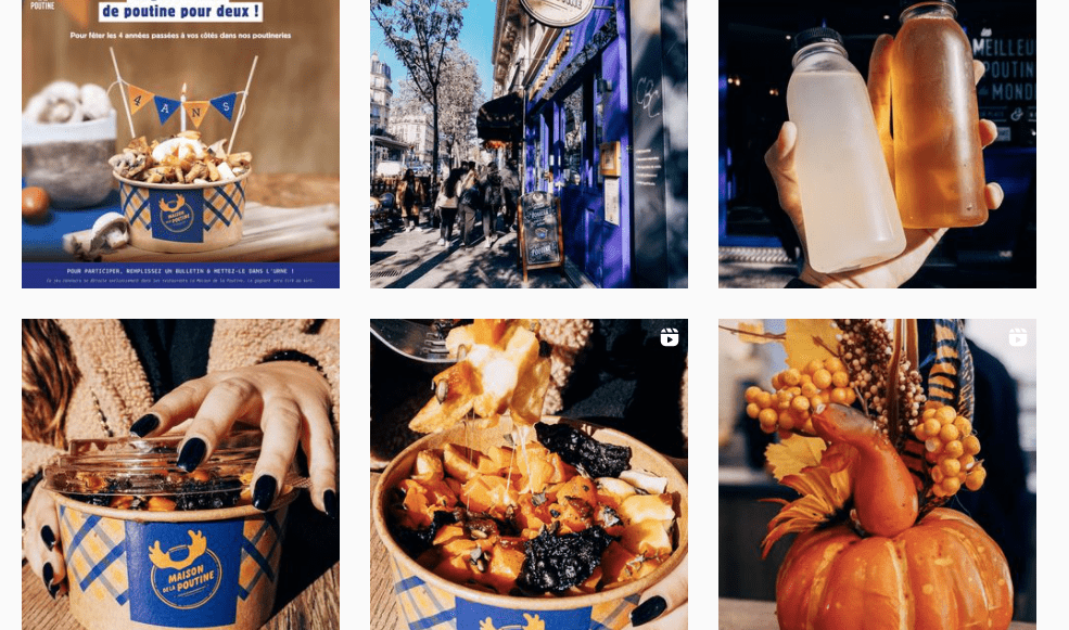 Le restaurant La Maison de la Poutine basé à Paris en est un excellent exemple. L’établissement prend soin de travailler ses photos en y ajoutant des éléments de branding (notamment son logo en forme de renne) afin de se démarquer et d’être bien identifié par ses clients.