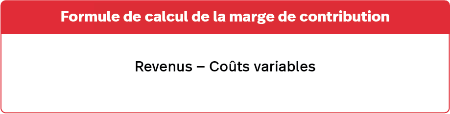 Investopedia présente la marge de contribution comme la différence entre le prix de vente d’un produit et les coûts variables associés à sa production et à son processus de vente. Résumée en une formule simple, elle se présente de la manière suivante :