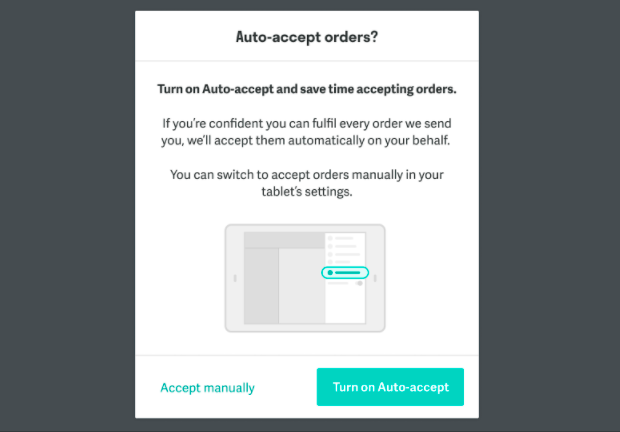 Les restaurateurs ont la possibilité d’accepter automatiquement les commandes entrantes en activant la fonctionnalité dans les paramètres de la tablette fournie par Deliveroo