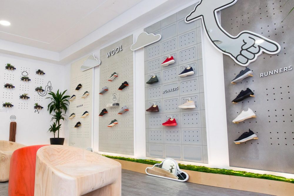 Les magasins All Birds utilisent une signalétique très clair pour indiquer où se trouvent les différentes catégories d’articles.