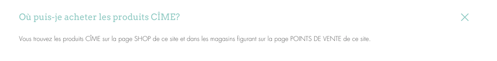 En outre, la plupart des consommateurs savent qu’il faut chercher la page FAQ à cet endroit. La placer près de liens comme « Contact », comme le fait Cîme dans l’exemple ci-dessus, est généralement une bonne solution.