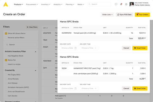 Grâce au lien entre Lightspeed et Apicbase, vous disposez d’une vision claire des stocks, des coûts alimentaires, de la production, des menus et des commandes. Apicbase vous donne le contrôle de tous les processus de cuisine et vous aide à garder le CoGS sous contrôle.